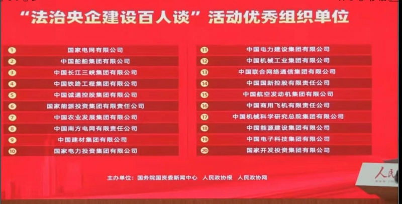 集團榮獲“法治央企建設百人談”活動優秀組織單位